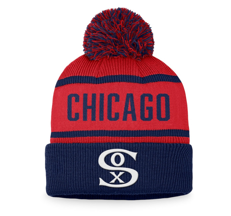 Adult Men's Chicago White Sox Cooperstown Collection Cuffed Knit Hat with Pom - Navy/Red
