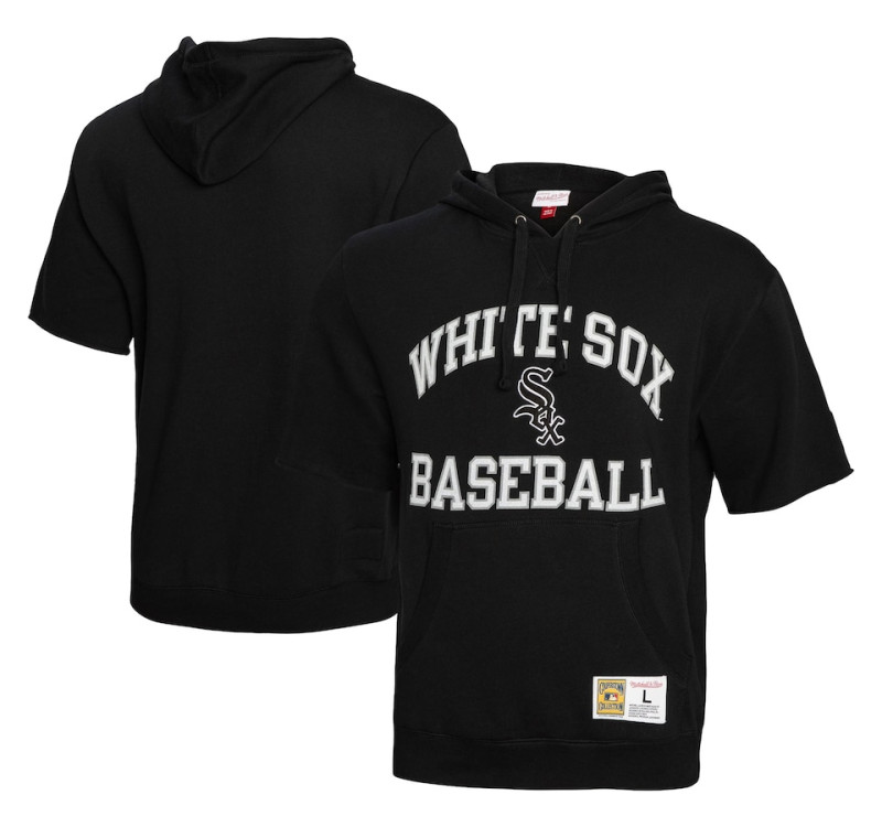 Adult Men's Chicago White Sox Mitchell & Ness Cooperstown Collection Washed Fleece Pullover Short Sleeve baseball Hoodie - Black