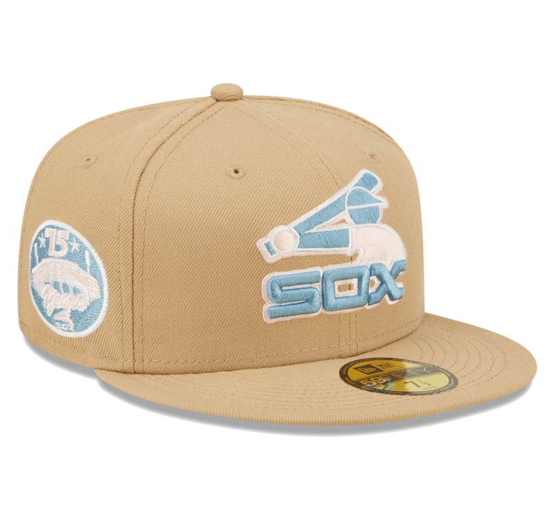 Adult Men's Chicago White Sox New Era 75th Anniversary of Comiskey Park Sky Blue Undervisor 59FIFTY Fitted Hat - Tan