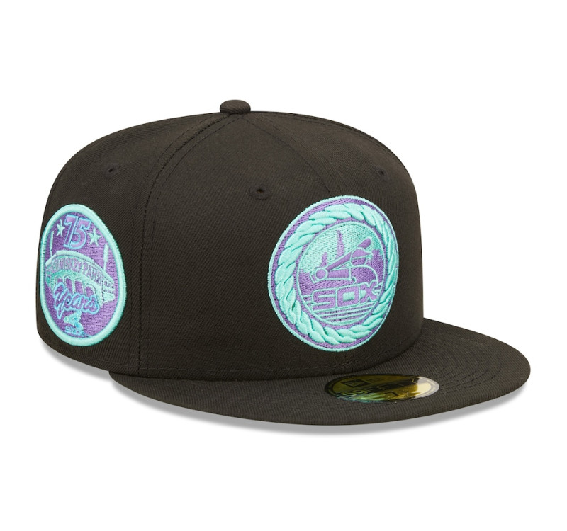 Adult Men's Chicago White Sox New Era Comiskey Park 75th Anniversary Black Light 59FIFTY Fitted Hat - Black
