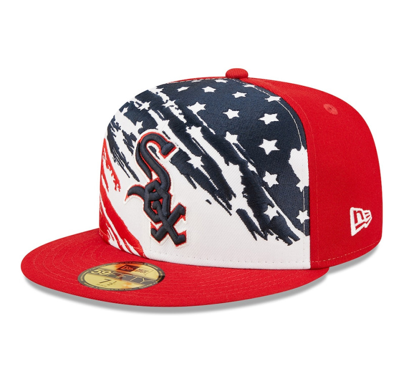 Celebrate Independence Day with America's favorite pastime by grabbing this 2022 4th of July Chicago White Sox On-Field 59FIFTY Fitted Hat by New Era. It features a high crown and flat bill, matching the look the players will be sporting on the field and making it a must-have for die-hard fans. Its festive graphics will get you excited to sit back and enjoy the holiday while cheering on all of your favorite Chicago White Sox players.
