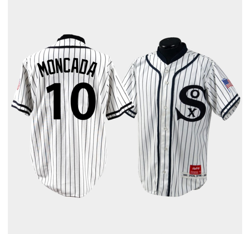 Men Chicago White Sox #10 Yoan Moncada White 1990 Turn Back the Clock Jersey