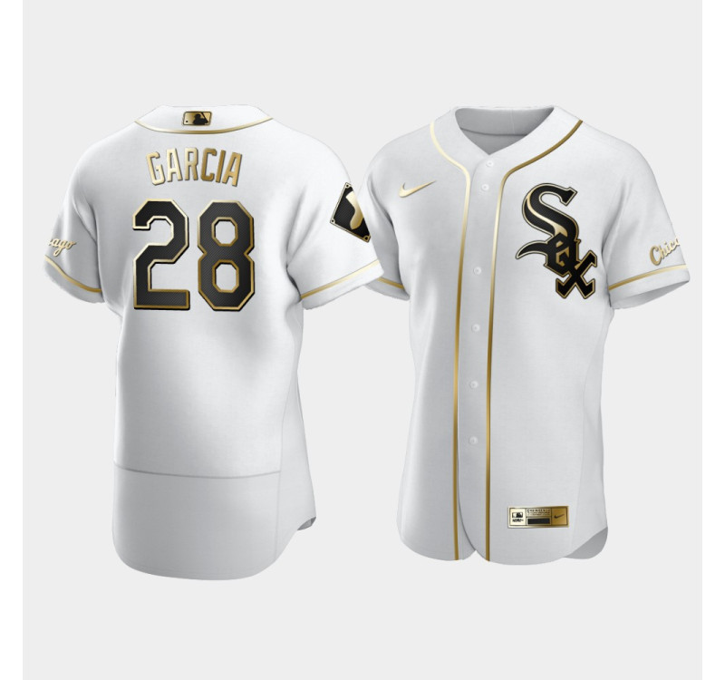 Men's Chicago White Sox Leury Garcia #28 White Golden Edition Authentic Jersey