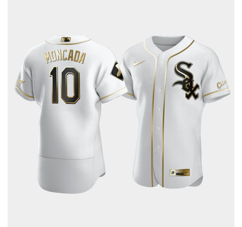 Men's Chicago White Sox Yoan Moncada #10 White Golden Edition Authentic Jersey